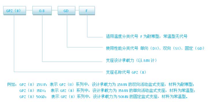 b 、耐寒型支座:適用于一40 ℃ 一十60 ℃ 使用,代號為F