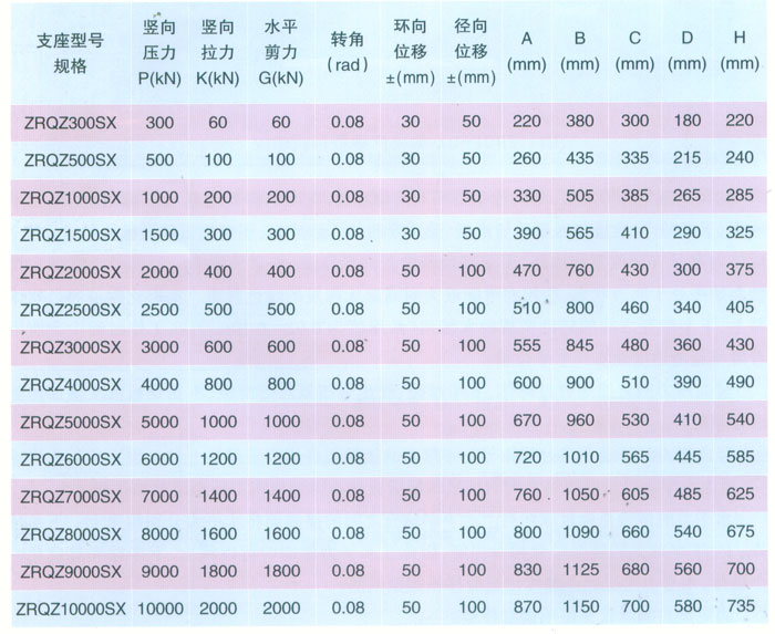ZRQZ-SX雙向位移型自潤(rùn)球鉸支座參數(shù)表