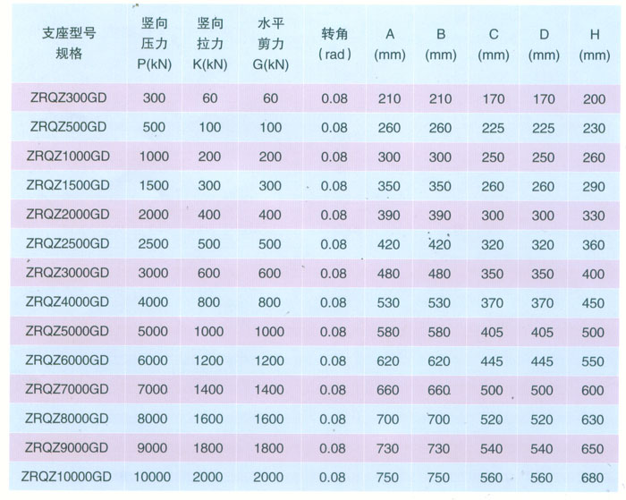 ZRQZ-GD固定型自潤(rùn)球鉸支座參數(shù)表    表3