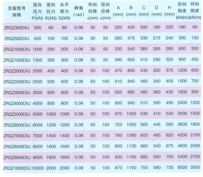 ZRQZ-SXJ雙向位移減震型自潤球鉸支座參數(shù)表    表4