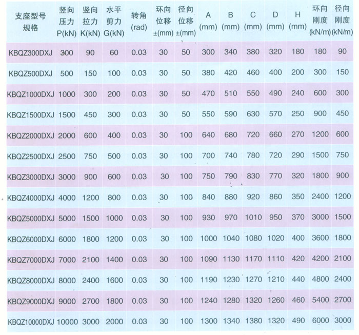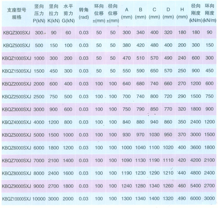 KBQZ-SXJ雙向位移減震型球形支座參數(shù)表    表10