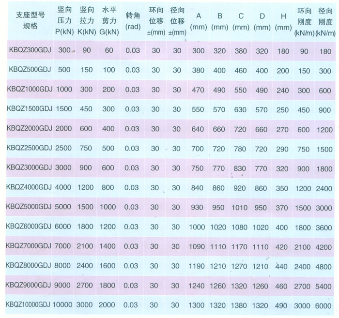KBQZ-GDJ固定減震型球型支座參數(shù)表    表12